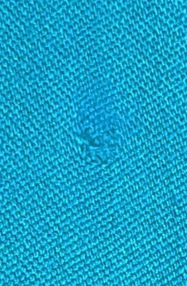 Onze “lakenvervanger” Hans de Jager is hierover benaderd en is komen kijken. Zijn constatering is dat ofwel iemand onvoorzichtig geweest is met een keu met een beschadigde pomerans, ofwel dat iemand met zijn horloge in het laken is blijven haken.